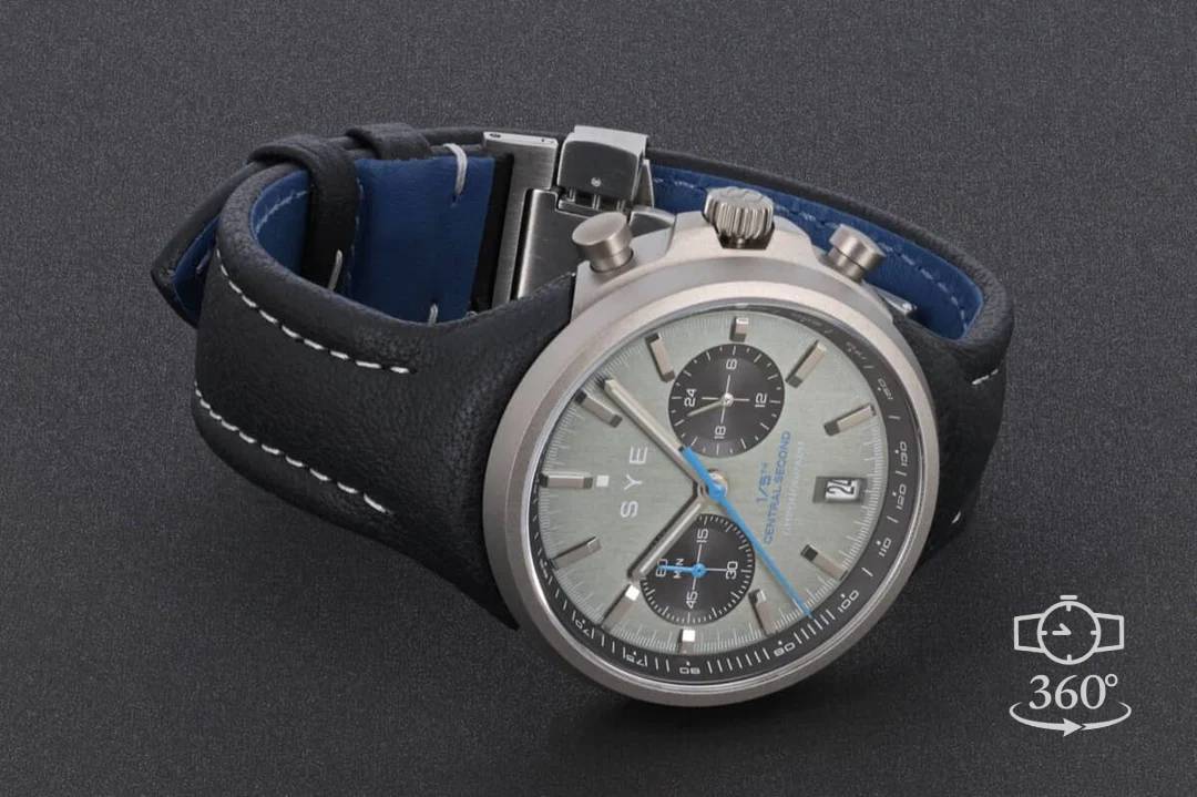 Notre chronographe noir est très rationnel. Les aiguilles bleues qui indiquent la mesure du temps contrastent fortement.