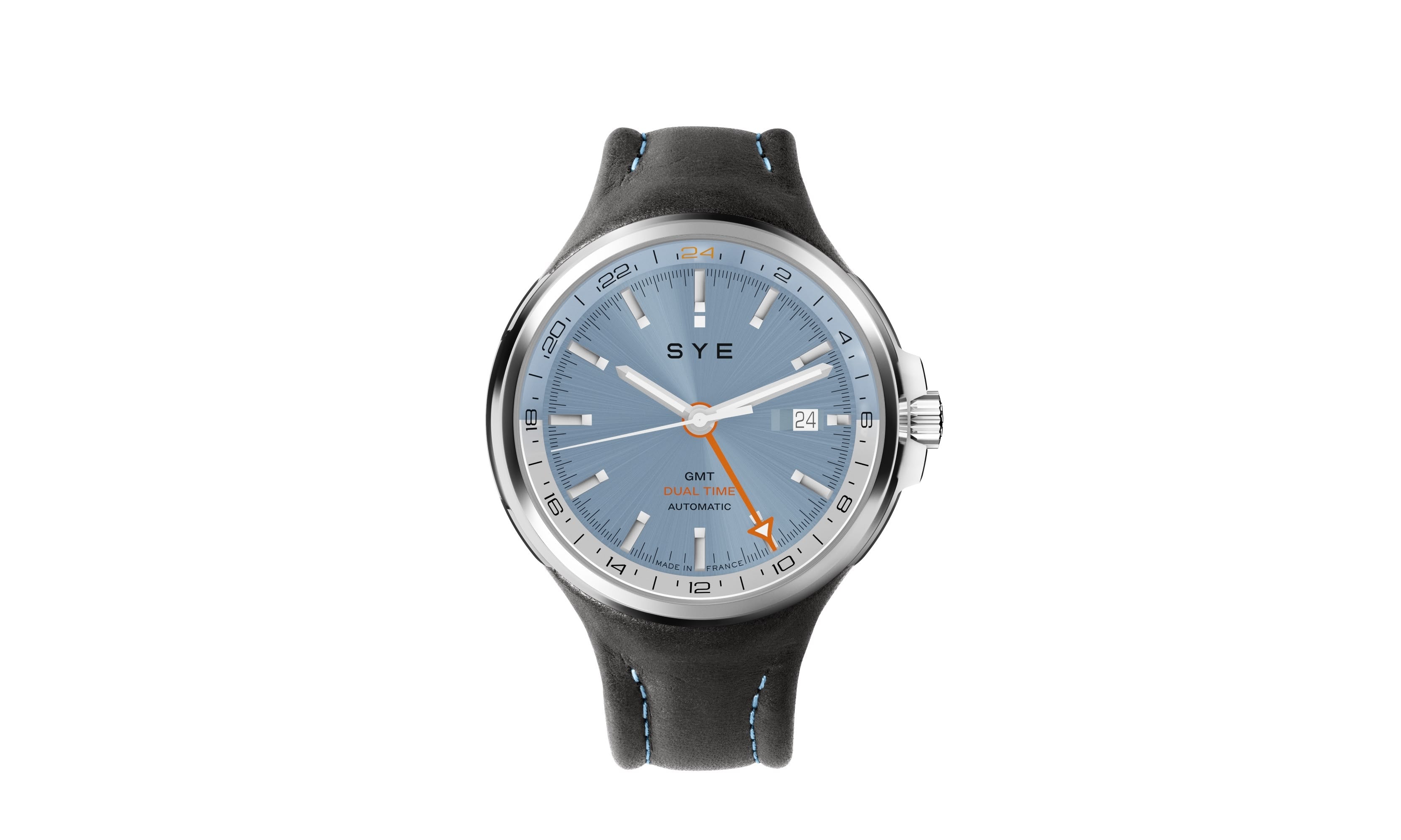 Puisque la vocation d’une montre GMT est de traverser les fuseaux horaires et de faire la course au soleil, nous avons troqué, pour ce nouveau modèle, les cadrans satinés pour 2 nouveaux cadrans soleillés : Columbus et Tulsa.Ces 2 cadrans reprennent les bases d’une carrosserie métal en lui insufflant une tonalité gris fumé pour Columbus et un bleu glacier pour Tulsa.